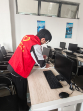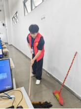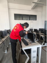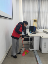 活动现场,志愿者们分组协作、分工明确,化身机房 “美容师”。有人手持抹布,仔细擦拭每一张桌面,不放过任何一处积尘;有人弯腰俯身,用扫帚清扫地面的碎屑杂物;还有人专注地擦拭电脑显示器,让屏幕重新焕发光亮。每一个角落都认真清扫,每一处细节都用心打理,忙碌的身影成为机房里最亮眼的风景。
