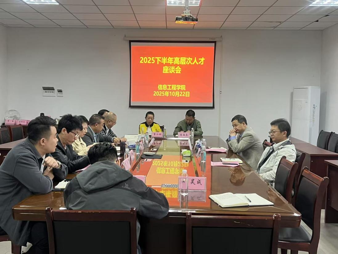 (本网讯:文|邓昊成/图|王紫妮 邓昊成)为了深入贯彻人才强校战略,提升人才工作的质量,充分发挥高层次人才引领作用。10月22日下午,信息工程学院在院会议室召开2025下半年高层次人才交流座谈会,校党委副书记、校长熊震宇出席会议并与高层次人才进行了深入沟通交流。信息工程学院副院长(主持工作)李香泉主持会议。