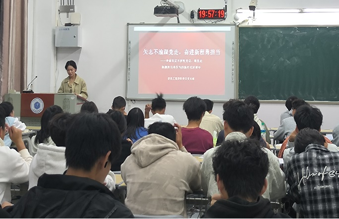 (本网讯: 文 | 唐志 图 | 金哲源、 高梅、 唐志 、 刘云 ) 为引导新生坚定理想信念 , 明确奋斗方向,10月23日至28日,信息工程学院学生党支部组织“E心向党”宣讲团深入全体 2025级 新生班级,开展了以“矢志不渝跟党走,奋进新程勇担当”为主题的理论宣讲活动。