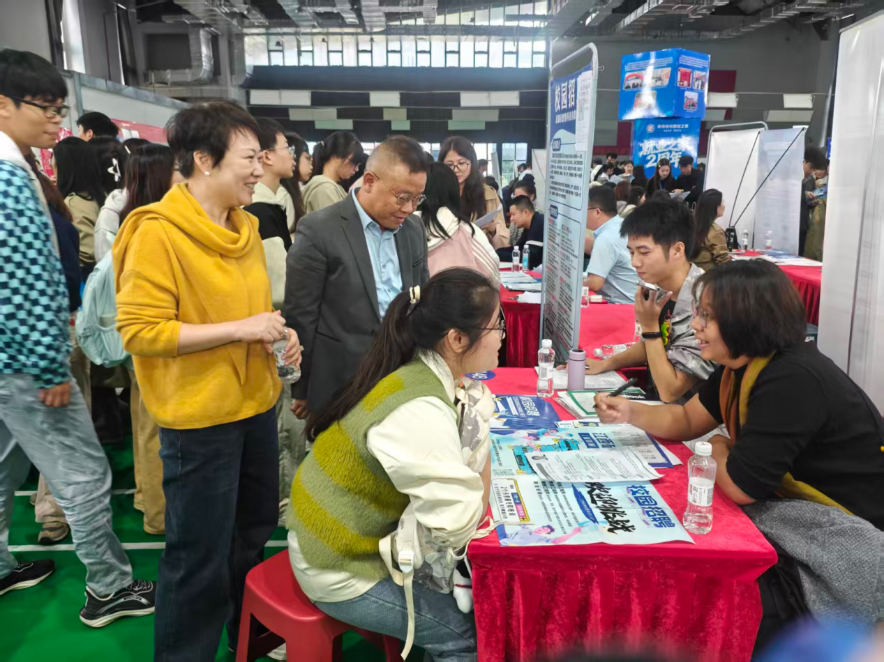 (本网讯:胡欣)为深入贯彻落实党中央、国务院关于高校毕业生就业工作的决策部署,拓宽毕业生就业渠道,深化校企合作,10月31日上午,信息工程学院在羽毛球场的校园招聘会开展“访企拓岗”专项活动。校党委副书记、校长熊震宇亲临现场指导,信息工程学院党委书记练缤艳、学院行政负责人李香泉、学院党委副书记万涛同参会企业进行深入交流,精准对接人才需求。