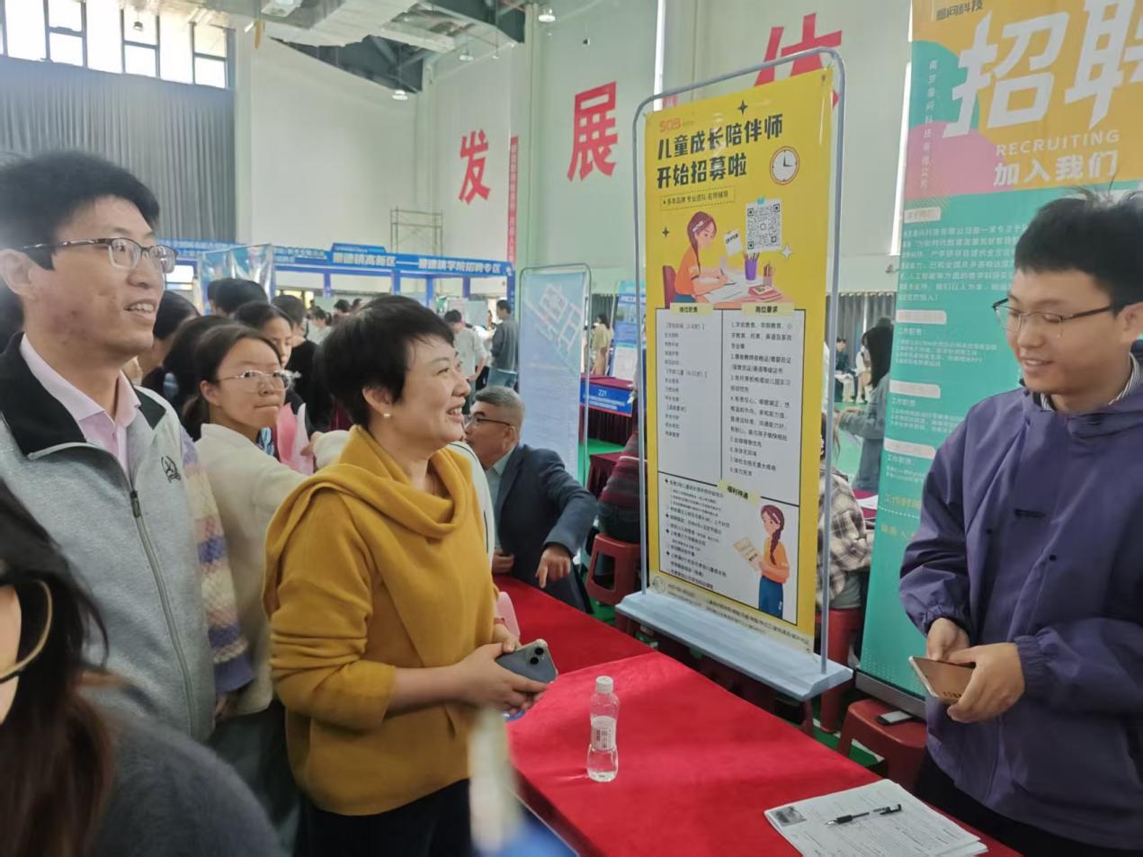 活动现场气氛热烈,秩序井然。熊震宇校长一行首先来到软极网络技术(北京)有限公司的展位前,与公司招聘代表吴涛涛进行了亲切交谈。熊校长详细了解了该公司的业务领域、技术发展方向以及对我校毕业生的招聘需求和培养建议。他感谢企业来校选聘人才,并表示学校将积极推动人才培养与社会需求的紧密衔接,为企业输送更多高素质的优秀毕业生。