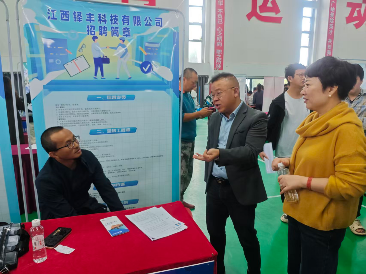 学院党委书记练缤艳、行政负责人李香泉也分别与江西铎丰科技有限公司、江西研泰科技有限公司、南京墨问科技有限公司等多家优质企业的招聘代表进行了深入沟通。他们仔细询问了各企业的岗位需求、薪资待遇及未来发展规划,并向企业重点推荐了我院相关专业的毕业生。双方还就共建实习实践基地、开展产学研合作等方面交换了意见,初步达成了进一步合作的意向。
