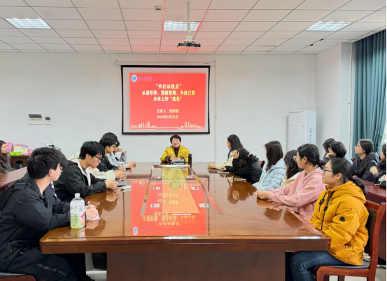 3月26日,学院党委书记练缤艳在学院会议室面向24级应统2班开展活动。她以“认清形势,提前布局,为自己的未来上好‘底色’”为题,结合近年就业数据,介绍了我院毕业生以直接就业为主、部分考研考公的发展现状,帮助同学们客观认识就业形势。她强调,无论选择哪条发展道路,都需提前规划、充分准备,建议在大二明确方向,避免临阵仓促。在能力储备上,她指出要扎实学好专业课程,精通Python、R语言等市场紧缺技能,树立“以终为始”的理念,对照岗位要求补齐能力短板;同时积极参与实习与学科竞赛,积累实践经验,提升综合竞争力。最后,她勉励同学们珍惜时光、奋发进取,以充足准备迎接未来挑战。